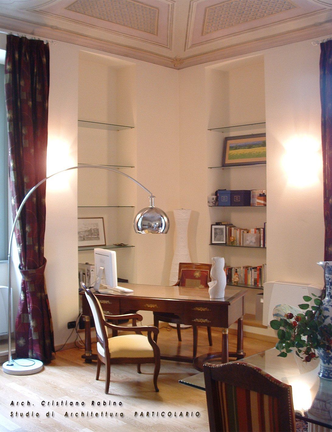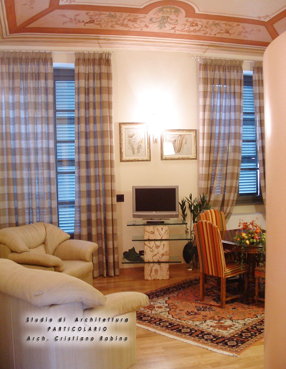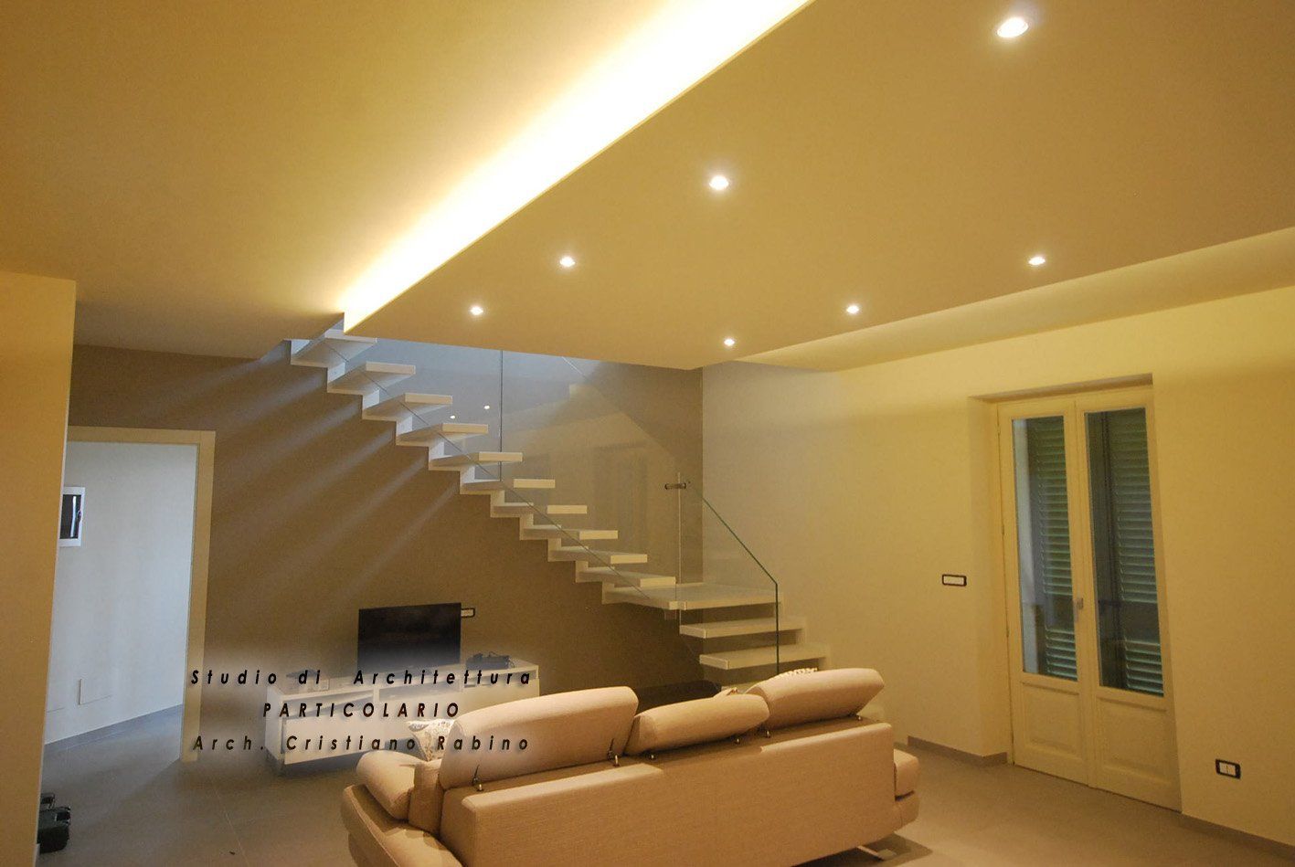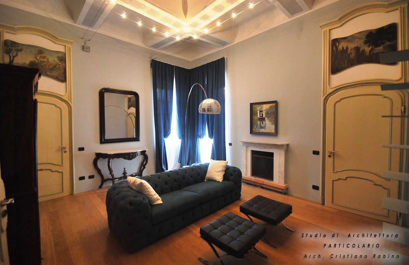 La progettazione di interni si pone come obiettivo la valorizzazione delle altezze nella tipologia "piani nobili". Il recupero dei soffitti originali, la scelta dei materiali di finitura attraverso cromatismi dall'aspetto nobiliare, l'illuminazione artificiale dai toni contemporanei e l'arredo sia classico che moderno, regalano agli ambienti un aspetto signorile.