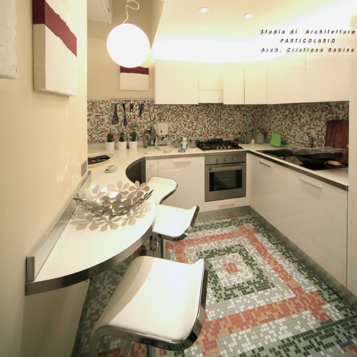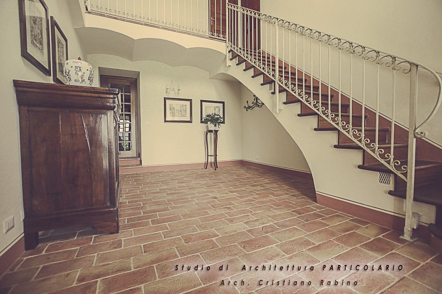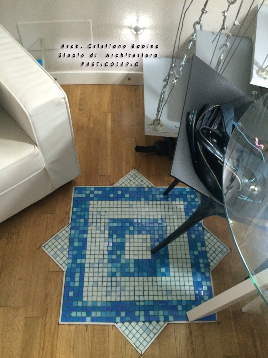 Al piano terra viene magistralmente restaurata l''esistente pavimentazione in materiale lapideo ove presente, viene riposizionata con mosaico vetroso ove mancante.