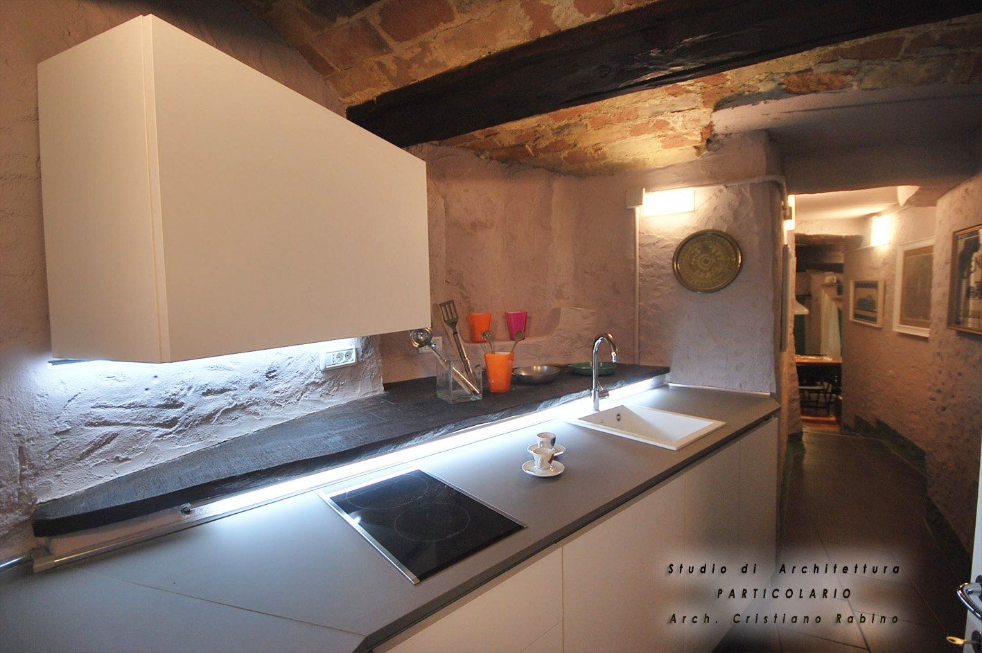 Allestimento d'interni e finiture di un appartamento situato all'interno di un edificio storico nel centro di una località delle Langhe. L'immobile dispone delle tipiche caratteristiche dei "piani nobili" con generose altezze e finiture di pregio.