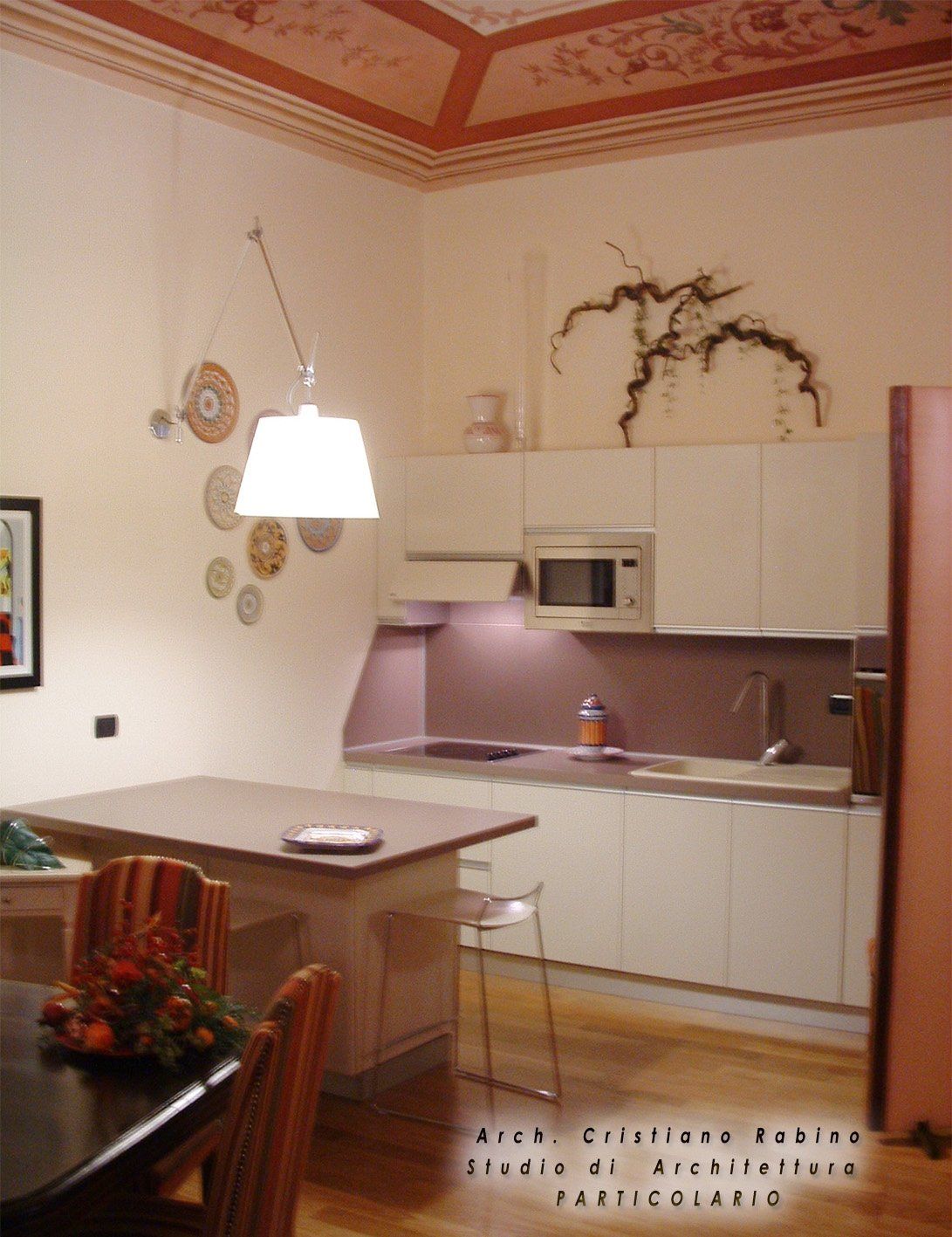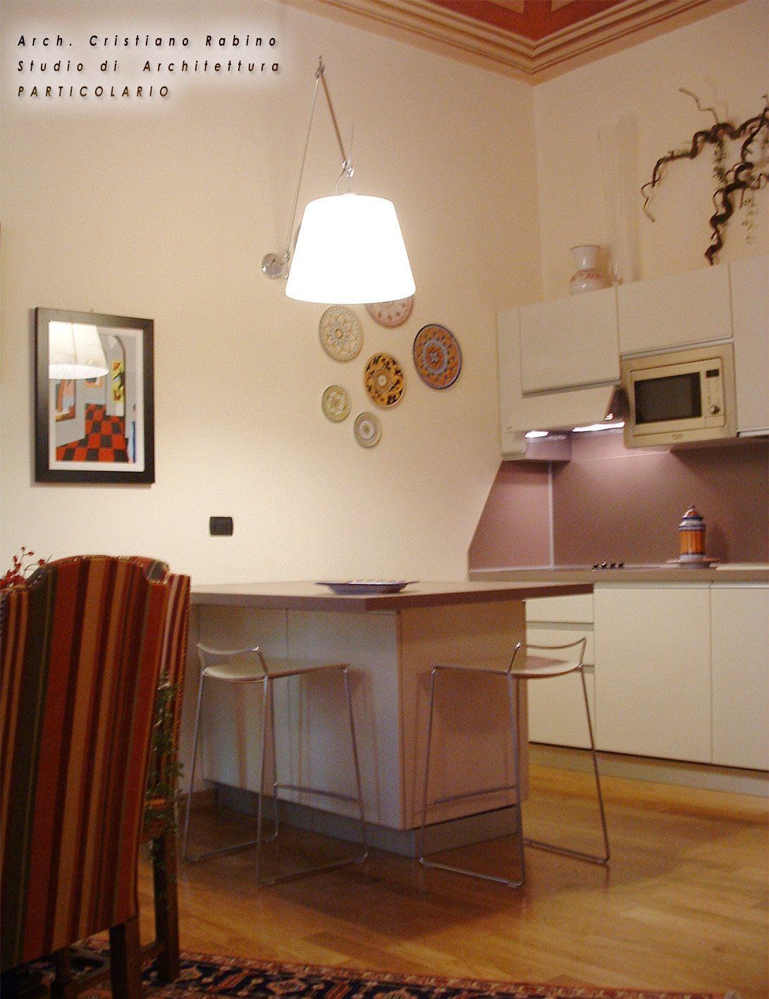 La progettazione interna di questo appartamento all'interno di un'ex canonica, adiacente tutt'oggi ad una chiesa sconsacrata, è connotata dalla presenza di piccoli spazi. Il recupero dei locali, con finalità abitativa, si pone come sfida valorizzando gli ambienti esistenti e riutilizzando gli arredi originari (debitamente restaurati) come scelta stilistica.