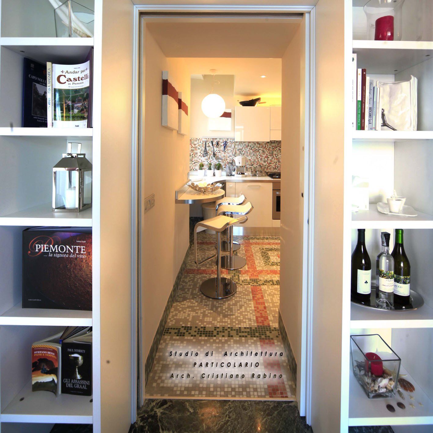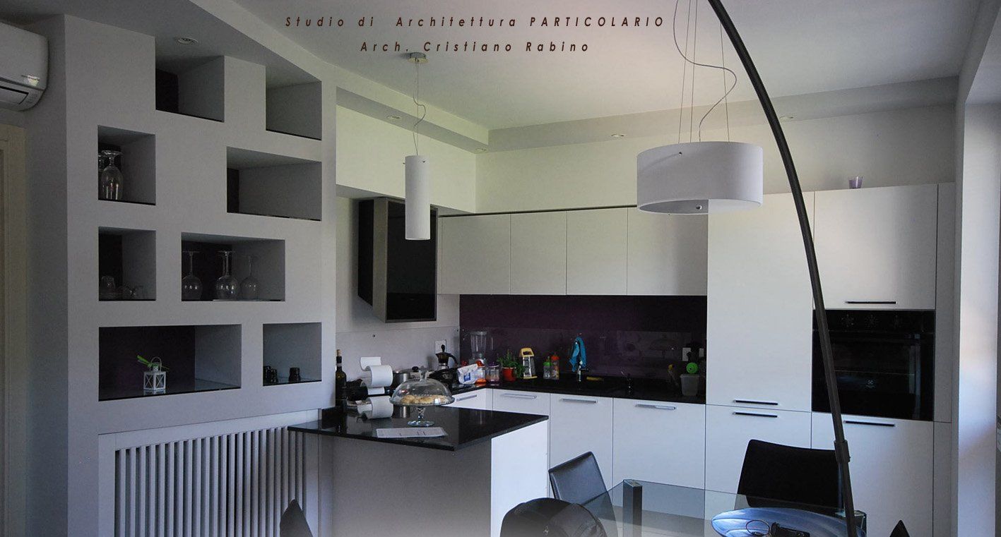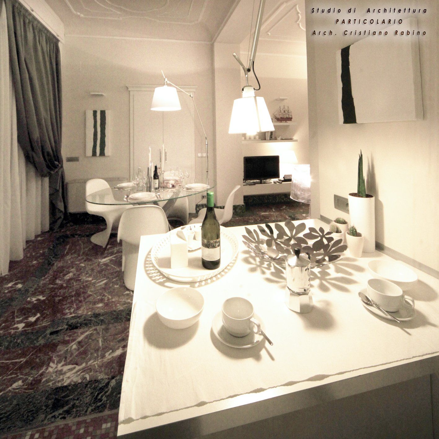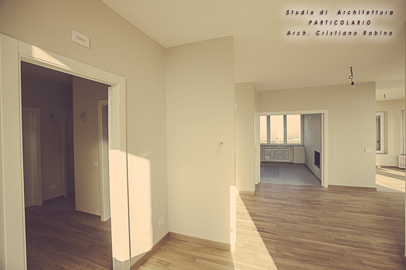 Ristrutturazione , allestimento d'interni e nuove finiture di appartamento sito nel Monferrato. La delicata scelta del pavimento nei toni del bianco in coordinato con le pareti regalano ampio risalto agli arredi che donano una forte sensazione di leggerezza agli ambienti. Lo studio dei controsoffitti e dell' illuminazione a soffitto incornicia ed evidenzia le diverse zone dell'appartamento . La studio di composizione dei vari ambienti si pone come obiettivo la scelta di materiali leggeri nell'aspetto visivo , al contempo ricercati nelle finiture, così da dare vita ad un ambiente elegante, moderno ed allo stesso tempo attrezzato con arredi su misura.