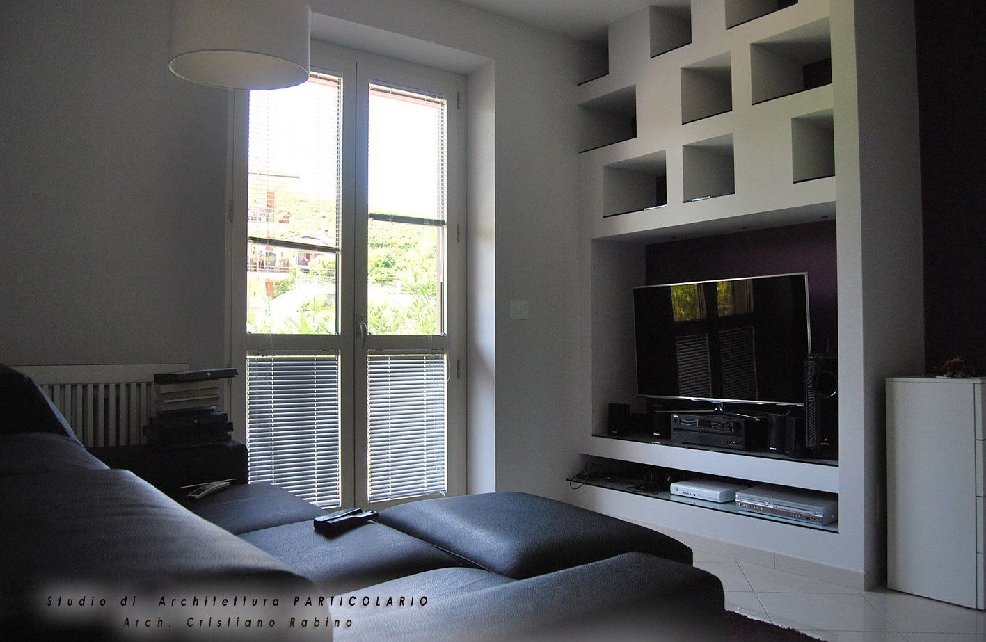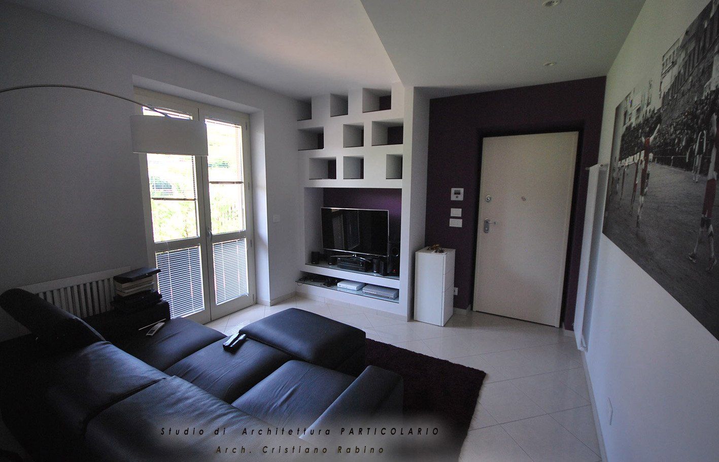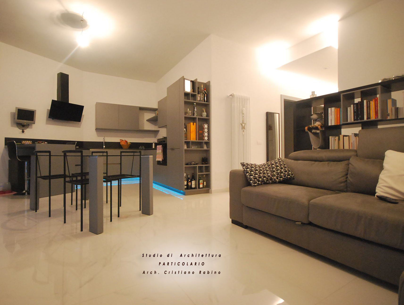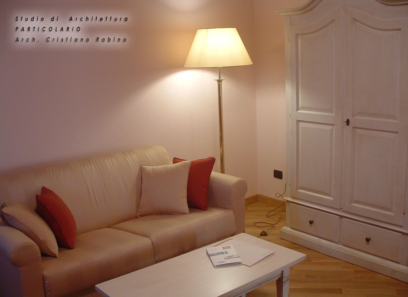 Ristrutturazione , allestimento d'interni e nuove finiture di appartamento sito nel Monferrato. La delicata scelta del pavimento nei toni del bianco in coordinato con le pareti regalano ampio risalto agli arredi che donano una forte sensazione di leggerezza agli ambienti. Lo studio dei controsoffitti e dell' illuminazione a soffitto incornicia ed evidenzia le diverse zone dell'appartamento . La studio di composizione dei vari ambienti si pone come obiettivo la scelta di materiali leggeri nell'aspetto visivo , al contempo ricercati nelle finiture, così da dare vita ad un ambiente elegante, moderno ed allo stesso tempo attrezzato con arredi su misura.