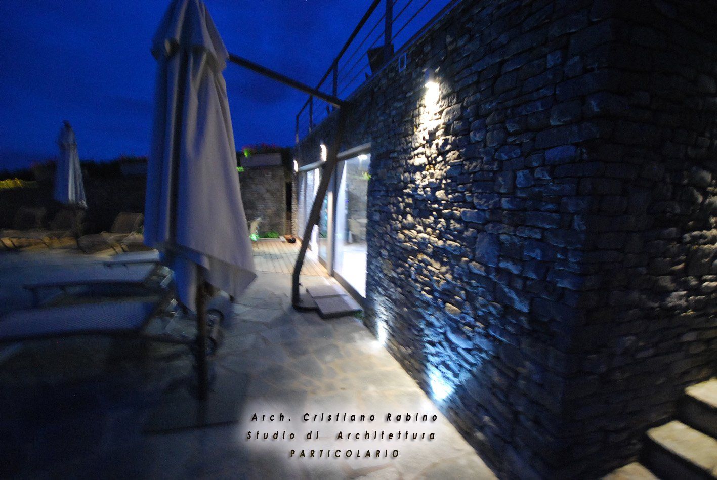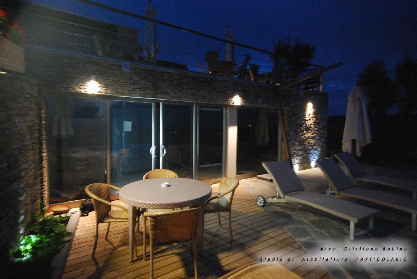 All'esterno, la ricerca dei materiali tipici del luogo, accostata alla composizione architettonica, rivisitata nei fronti dell'abitazione, hanno dato vita ad un suggestivo legame con l'ambiente circostante.