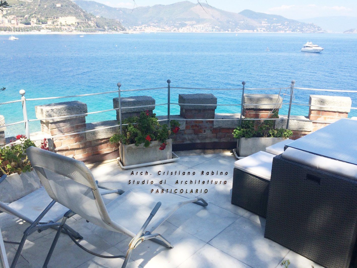 E' situato all'interno di edificio di notevole prestigio, con affaccio diretto sulla costa ligure.