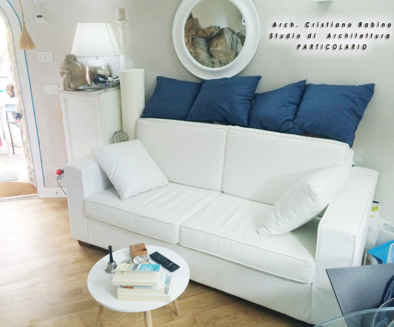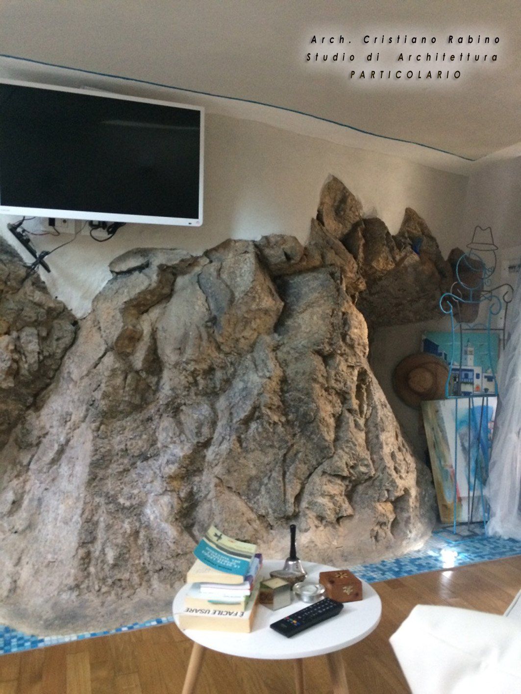 La progettazione è mirata a valorizzare le particolari finiture rocciose presenti all'interno. Gli ulteriori materiali di finitura dal punto vista stilistico, della ricerca architettonica ed annesse scelte dei materiali impiegati, rievocano la progettazione in ambito navale. La tenue scelta cromatica delle pareti, l'ausilio di cavi in acciaio, arredi contemporanei ed il recupero delle originali finestre ad oblò, manifestano tutta l'unicità di questo immobile.