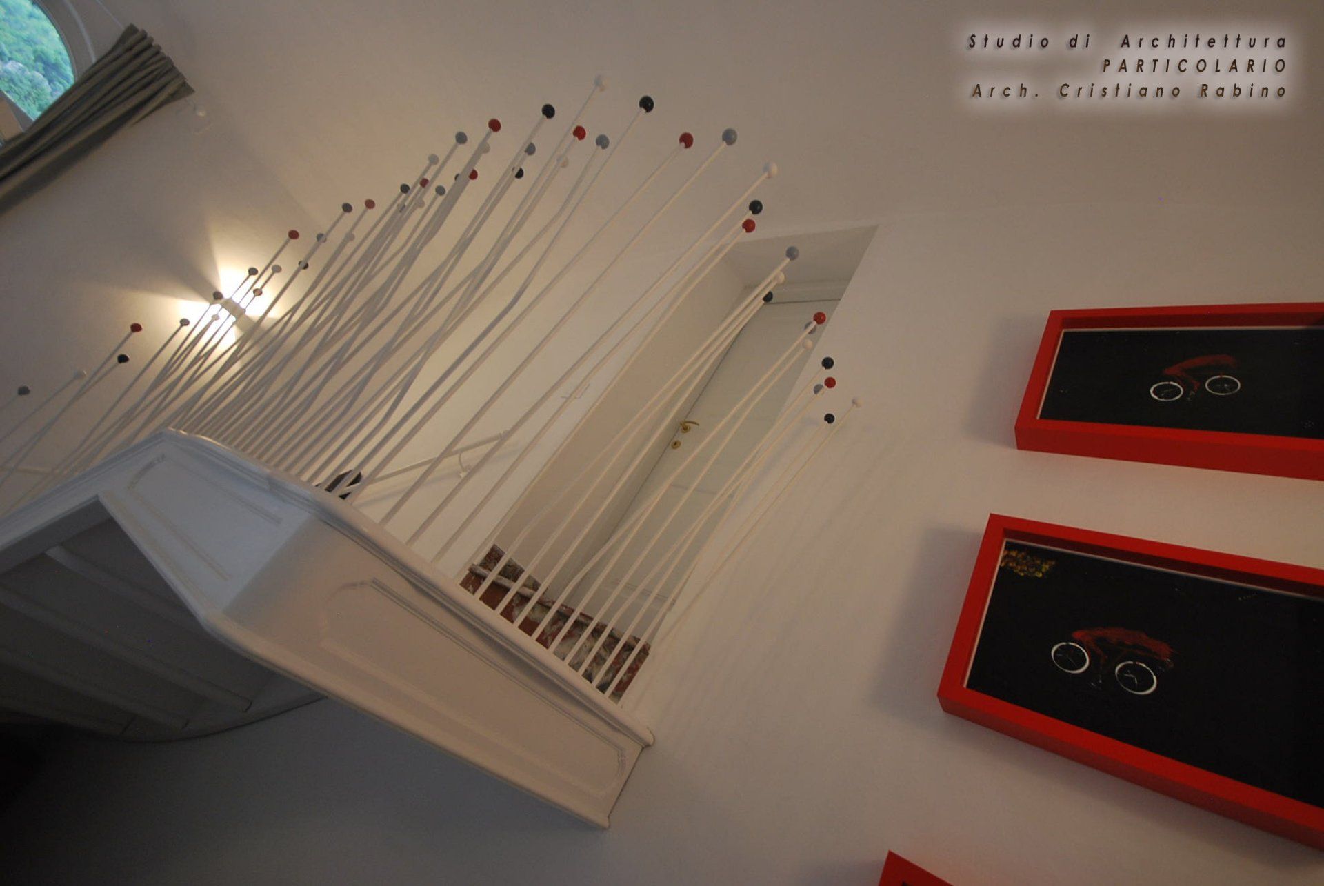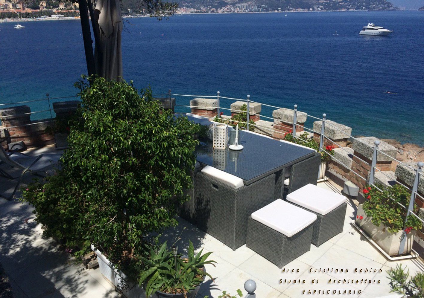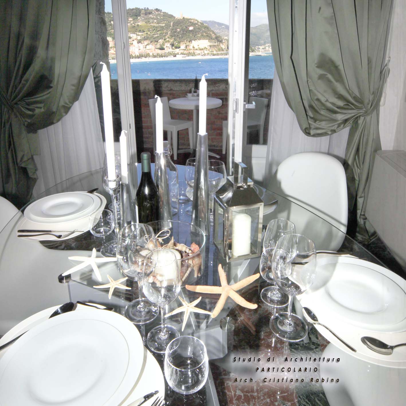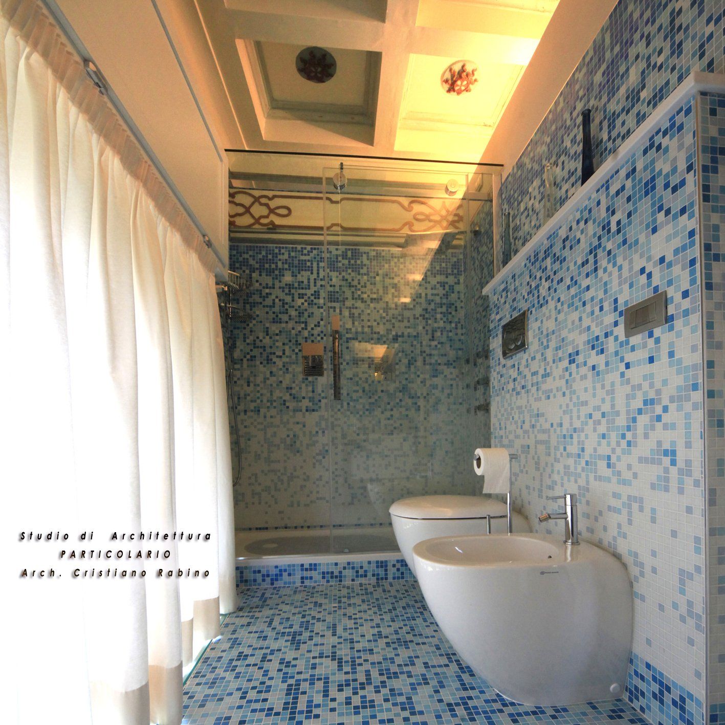 E' una ristrutturazione completa di appartamento in edificio di notevole pregio storico con affaccio sul mare. I luoghi, a differenza dell'originaria costruzione con altezze di 6 mt., dopo una precedente ristrutturazione, si presentano con un soppalco che divide gli ambienti.