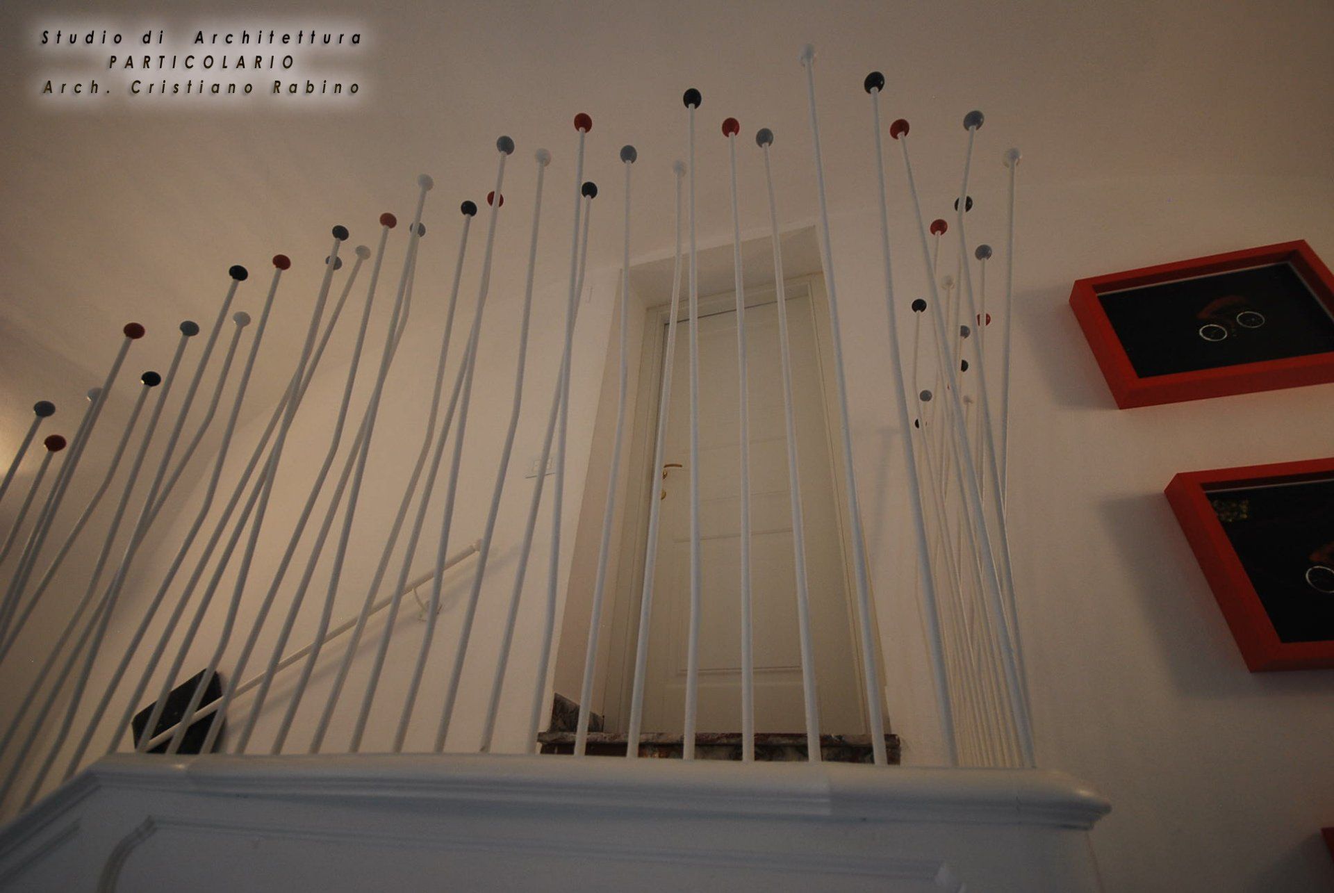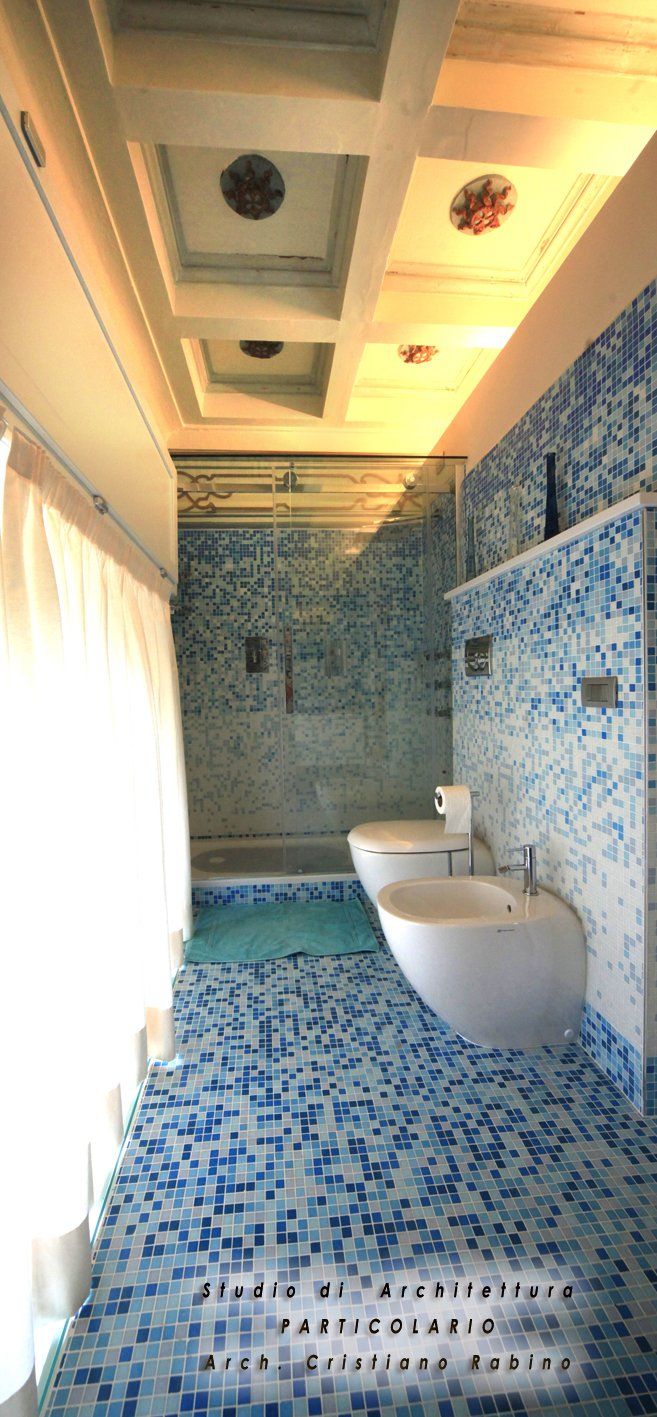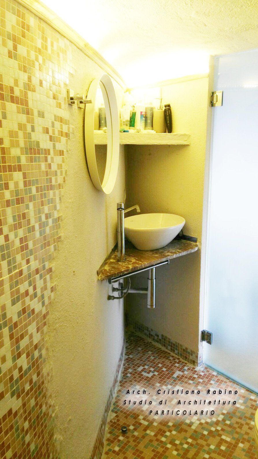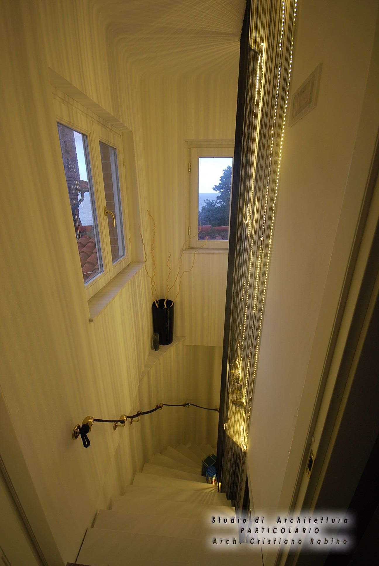 E' una ristrutturazione completa di appartamento in edificio di notevole pregio storico con affaccio sul mare. I luoghi, a differenza dell'originaria costruzione con altezze di 6 mt., dopo una precedente ristrutturazione, si presentano con un soppalco che divide gli ambienti.