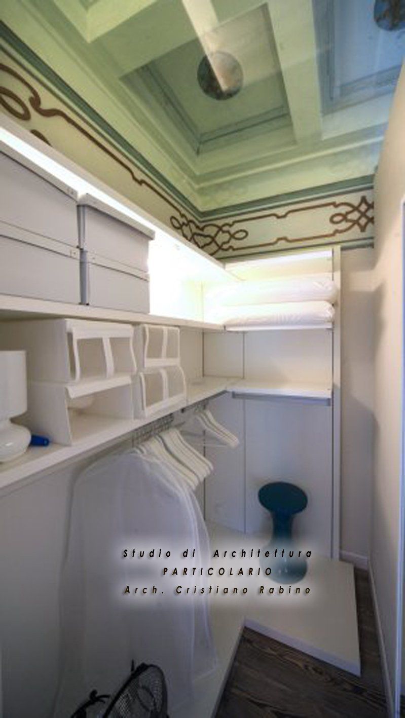Ristrutturazione completa di appartamento in edificio di notevole pregio storico con affaccio sul mare. Le sue altezze e finiture rientrano nella tipologia architettonica di piani nobili. La progettazione, tramite un accurato restauro, ha mirato a riportare ad originario splendore gli stucchi e pavimenti esistenti.